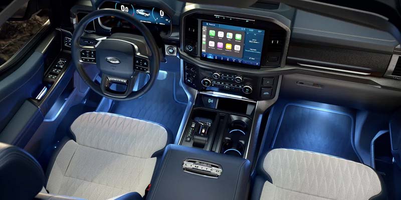 The 2022 F-150 vehicle can also tow 14,000 pounds and carry 3,325 pounds with the basic engine. Depending on if you hope to save gas or tow trailers, you can switch between different driving modes, like normal, eco, sport, tow/haul, slippery, and trail.