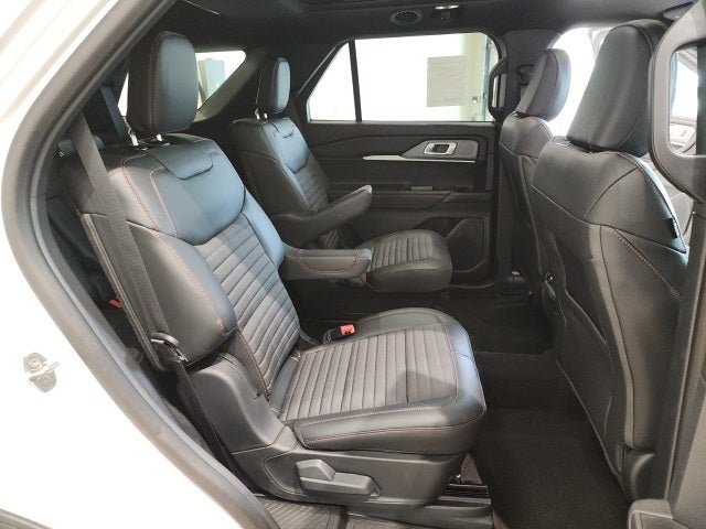 Lundgren Motors Inc is very proud to offer this fantastic-looking 2025 Ford Explorer ST-Line in White Metallic, Beautifully equipped with Equipment Group 300A Standard Package, 4WD, 10 Speakers, 2nd Row Captain's Chairs w/E-Z Entry & Armrest, 3.58 Non-Limited Slip Rear Axle, 3rd row seats: bench, 4-Wheel Disc Brakes, ABS brakes, Air Conditioning, Alloy wheels, Apple CarPlay/Android Auto, Auto High-beam Headlights, Automatic temperature control, Black Painted Roof, Brake assist, Bumpers: body-color, Compass, Delay-off headlights, Driver door bin, Driver vanity mirror, Dual front impact airbags, Dual front side impact airbags, Electronic Stability Control, Emergency communication system: 911 Assist, Exterior Parking Camera Rear, Four wheel independent suspension, Front anti-roll bar, Front Bucket Seats, Front Center Armrest, Front dual zone A/C, Front fog lights, Front reading lights, Fully automatic headlights, Garage door transmitter, Heated door mirrors, Heated front seats, Heated steering wheel, Heated Unique Cloth Captain's Chairs, Illuminated entry, Knee airbag, Leather steering wheel, Low tire pressure warning, Navigation System, Occupant sensing airbag, Outside temperature display, Overhead airbag, Overhead console, Panic alarm, Panoramic Vista Roof w/Power Shade, Passenger door bin, Passenger vanity mirror, Power door mirrors, Power driver seat, Power Liftgate, Power passenger seat, Power steering, Power windows, Radio: B&O Sound System by Bang & Olufsen, Rear air conditioning, Rear anti-roll bar, Rear reading lights, Rear window defroster, Rear window wiper, Remote keyless entry, Security system, Speed control, Speed-sensing steering, Speed-Sensitive Wipers, Split folding rear seat, Spoiler, Steering wheel mounted audio controls, Tachometer, Telescoping steering wheel, Tilt steering wheel, Traction control, Trip computer, Variably intermittent wipers, and Wheels: 20 Ebony-Painted Machined Aluminum!